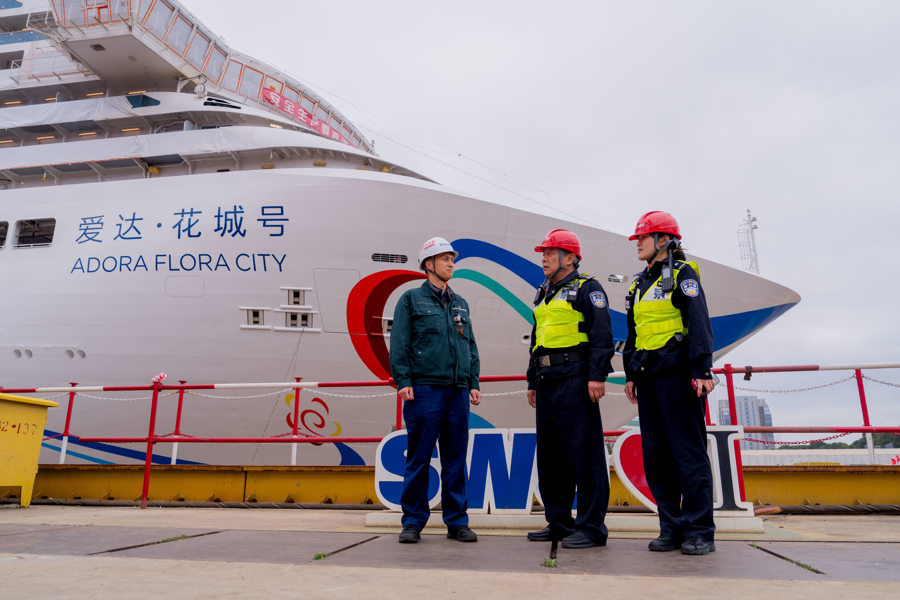 从“爱达·花城号”建造现场旁的祥瑞屋,到5号口外的警务作事点,再到灵活停放的出动警务车,船坞成了王勃的“第二个单元”。“危化品要妥善督察,领取使用必须登记,仓库门要随时锁好!”泛泛里话未几的王勃,到了厂区就变得“哓哓不停”,危化品仓库、零部件车间、职工寝室……每一处他王人反复搜检,只怕遗漏安全隐患。