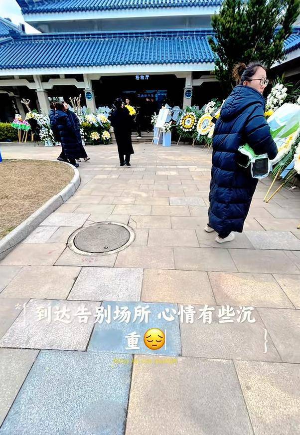 此外,殡仪馆外围即说念路的两侧也摆满了白黄相间的花圈,现场赓续有东说念主前来,大家齐穿戴深色衣物,看上去色彩凝重。