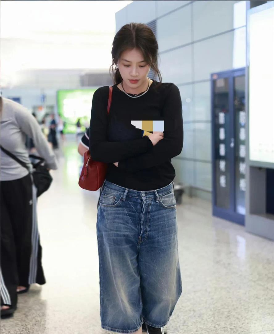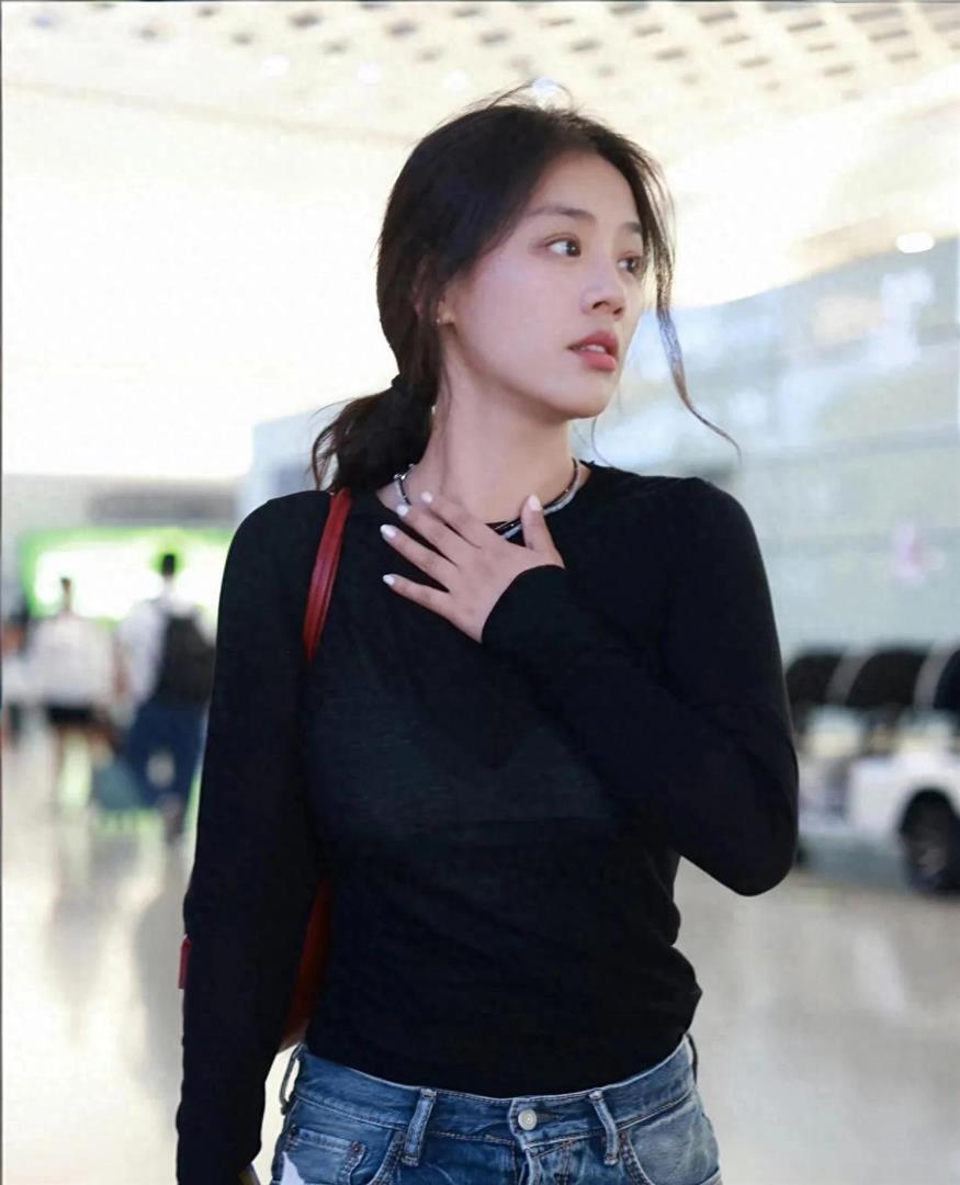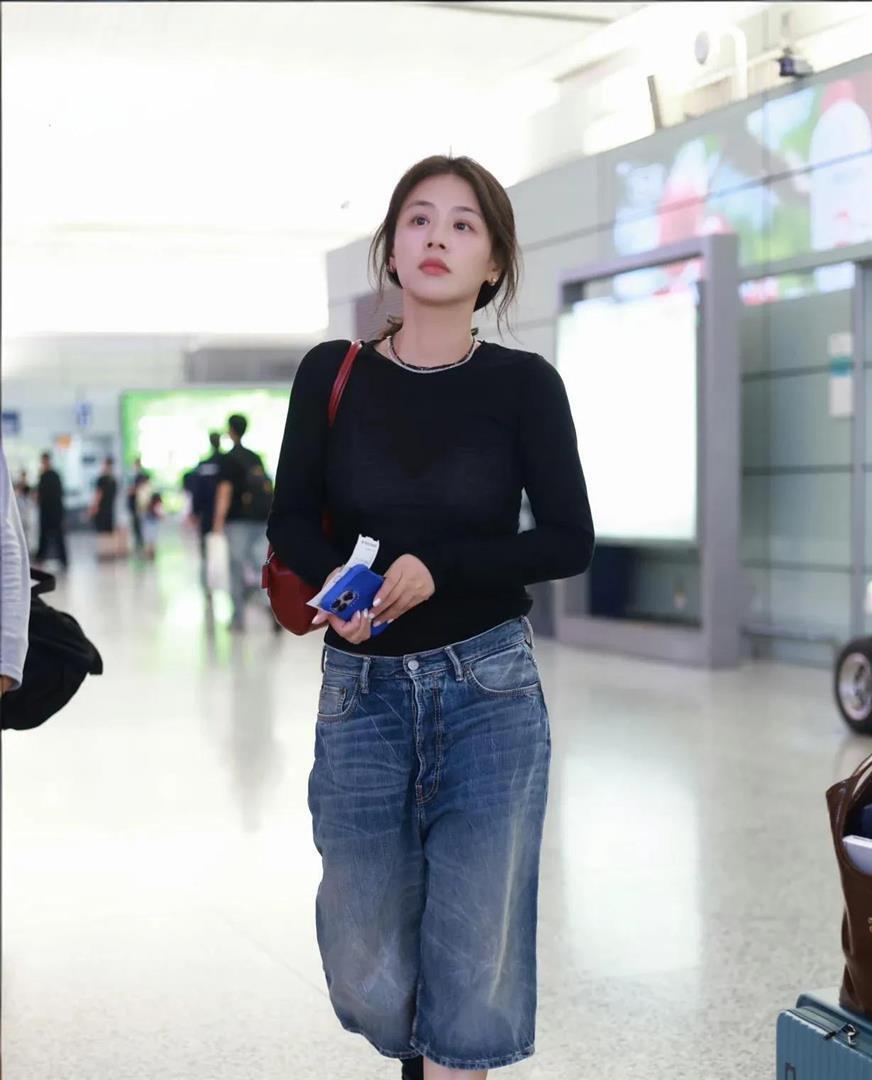 马想纯机场私服杀疯了! 玄色上衣+牛仔七分裤,这高档感绝了