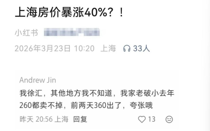 昨天晚上,我刷到了一位博主的发文,从他公布的本色来看,上海房价暴涨了40%。