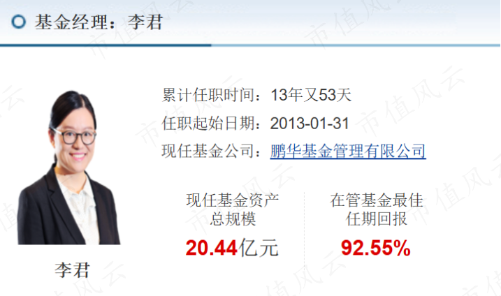 这只基金为鹏华弘利夹杂(A类:001122,C类:001123),由李君处理,自其2015年5月上任以来已执掌该基金近10年。李君现在在管3只居品,总限度为20.44亿元,鹏华弘利夹杂是其中枢代表作品。