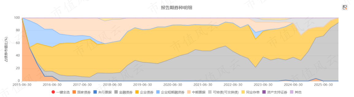 拓荒以来,这只基金在债券方面的券种成就上主要为为三类,分歧为金融债券、企业债券和中期单子。2025年末,金融债券的握仓比重已达84.6%。