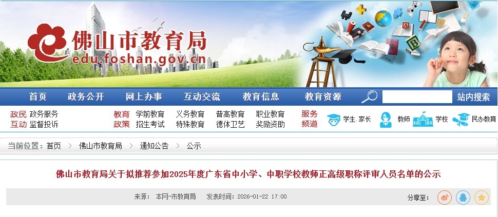 最新音书:1月22日,佛山市教学局发布公示名单,拟推选陈时髦等73东说念主投入2025年度广东省中小学、中职学校进修正高档职称评审。